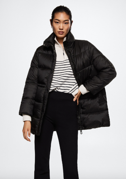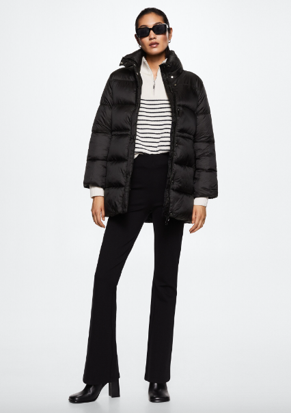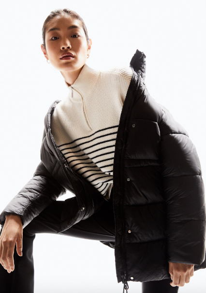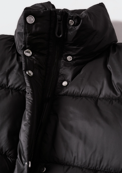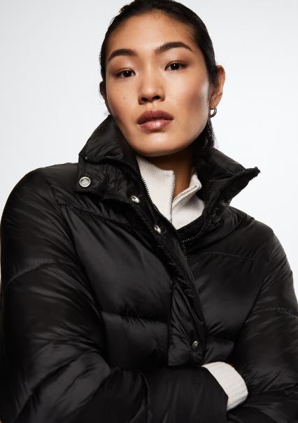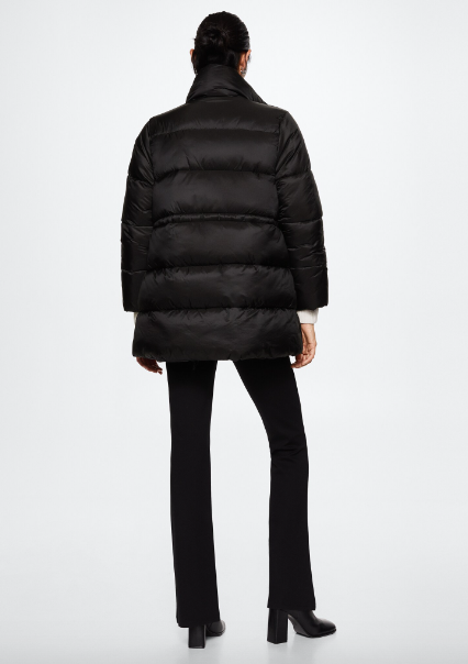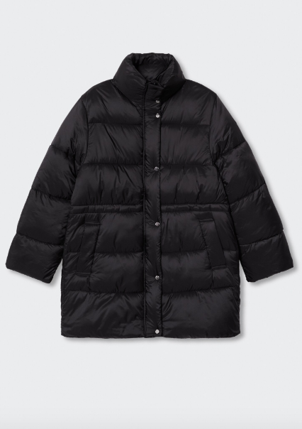 Medium quilted coat. Water-repellent: The durable finish of this garment protects against light rain, repelling contact with water and raindrops. Recycled polyester padding. Quilted design. Adjustable design. Turtleneck. Long sleeve. Inner lining. Zip fastening on the front section. Press stud fastening on the collar.
