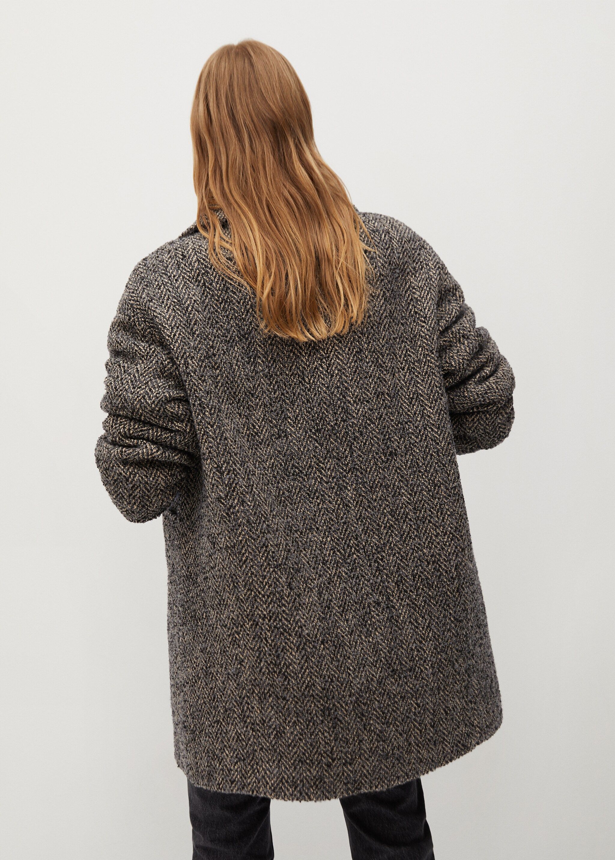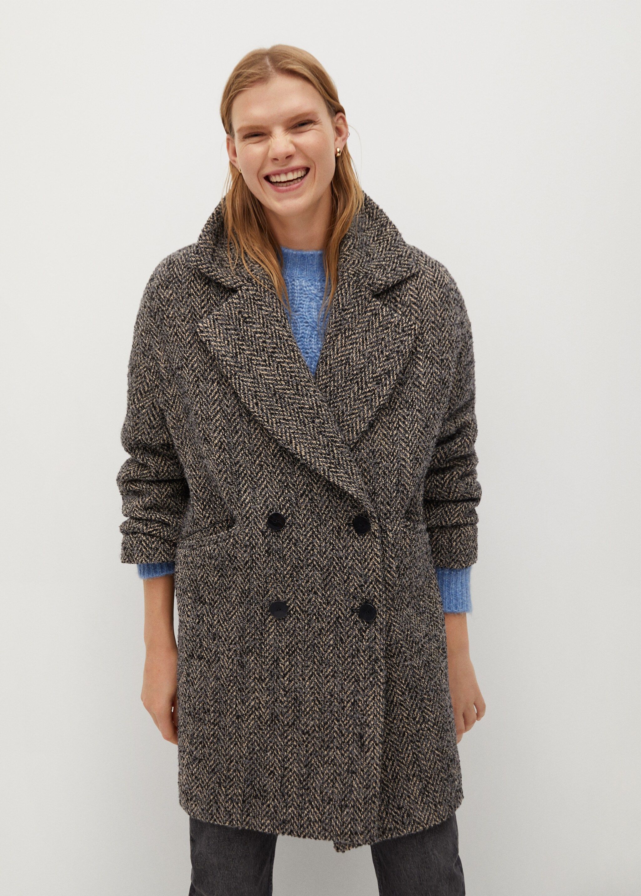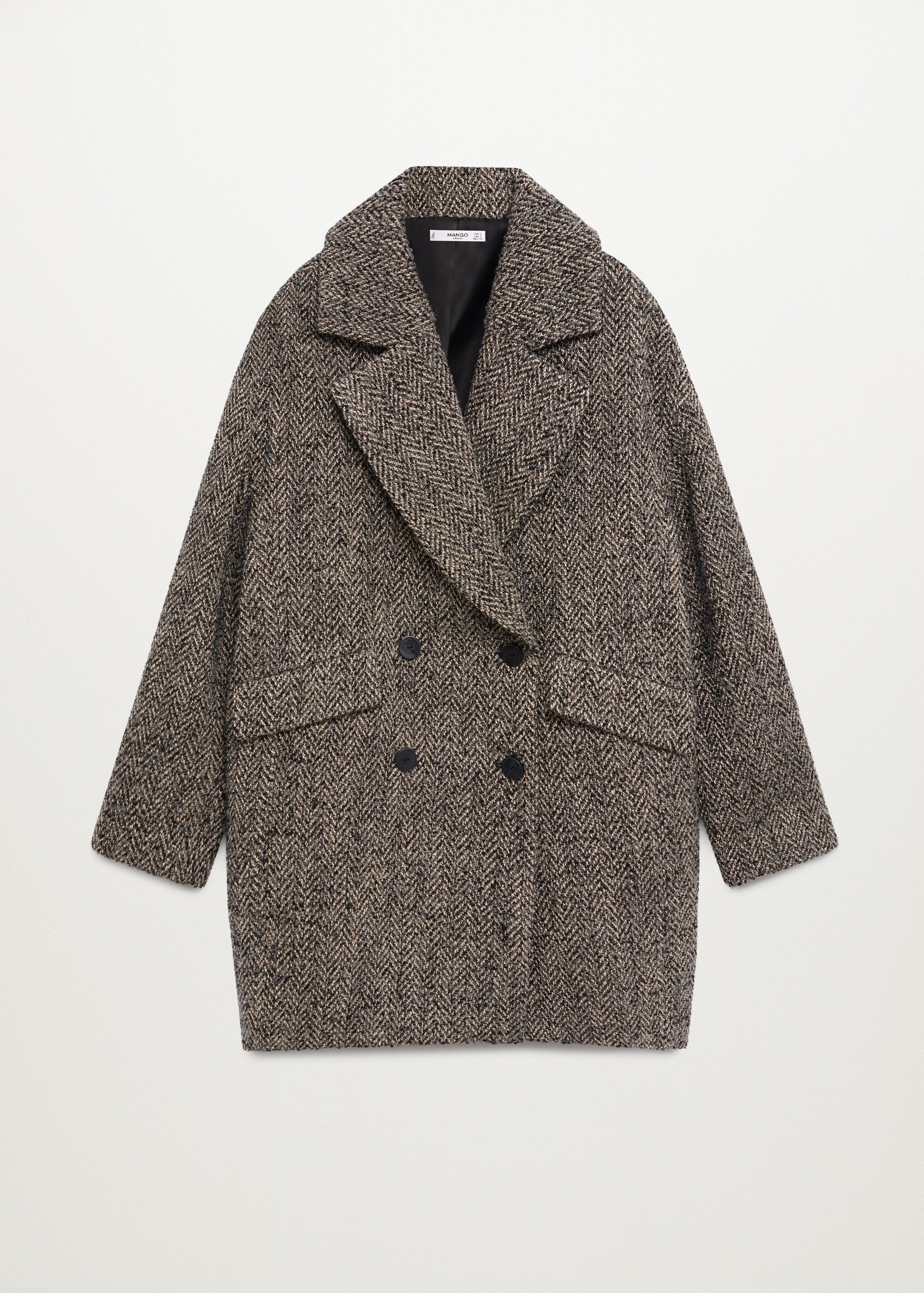 Mango Double-Breasted Wool Herringbone Coat Textured, Black & White