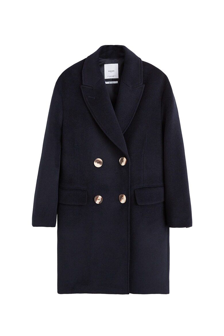 Mango Double-Breasted Wool Coat Dark Navy Blue