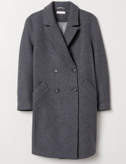 H&M Double-Breasted Wool Blend Coat Grey Melange