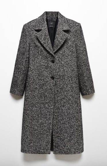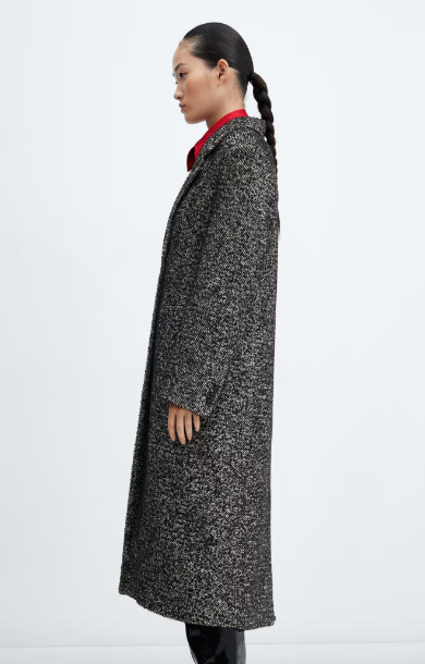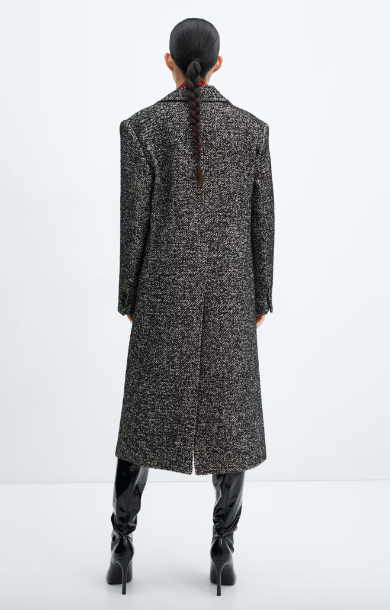 Mango Long Marbled Coat - Black & White