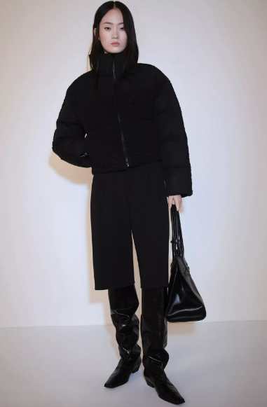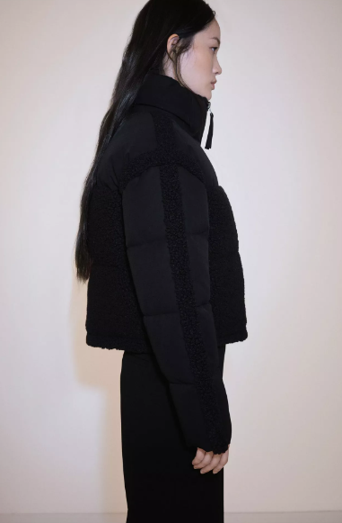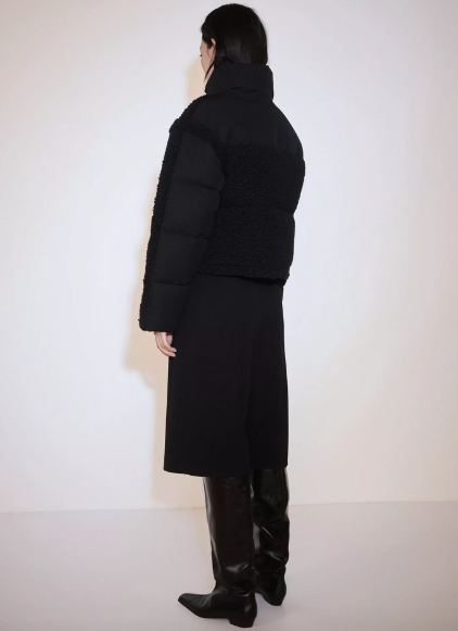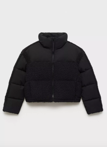 Mango Oversized Furry Crop Puffer Jacket - Black