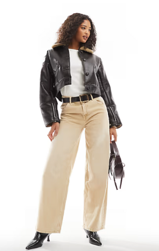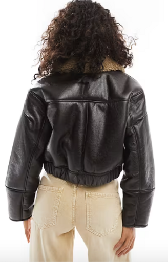 Pull & Bear Faux Leather Jacket in Dark Brown